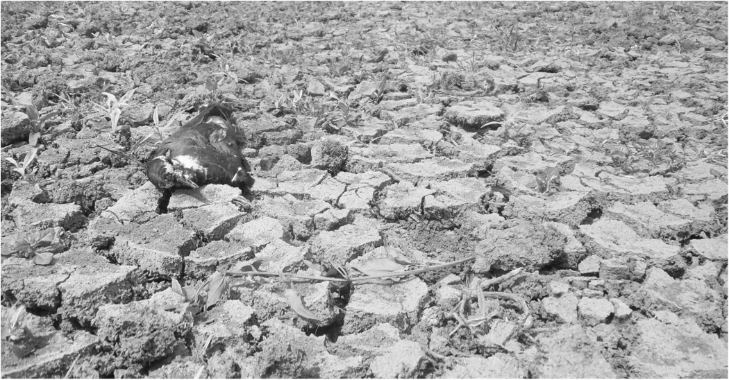 01 Dead Lapwing Vanellus vanellus on parched ground, Haines Meadows wetlands, Worcestershire 2018. ©Gary Farmer